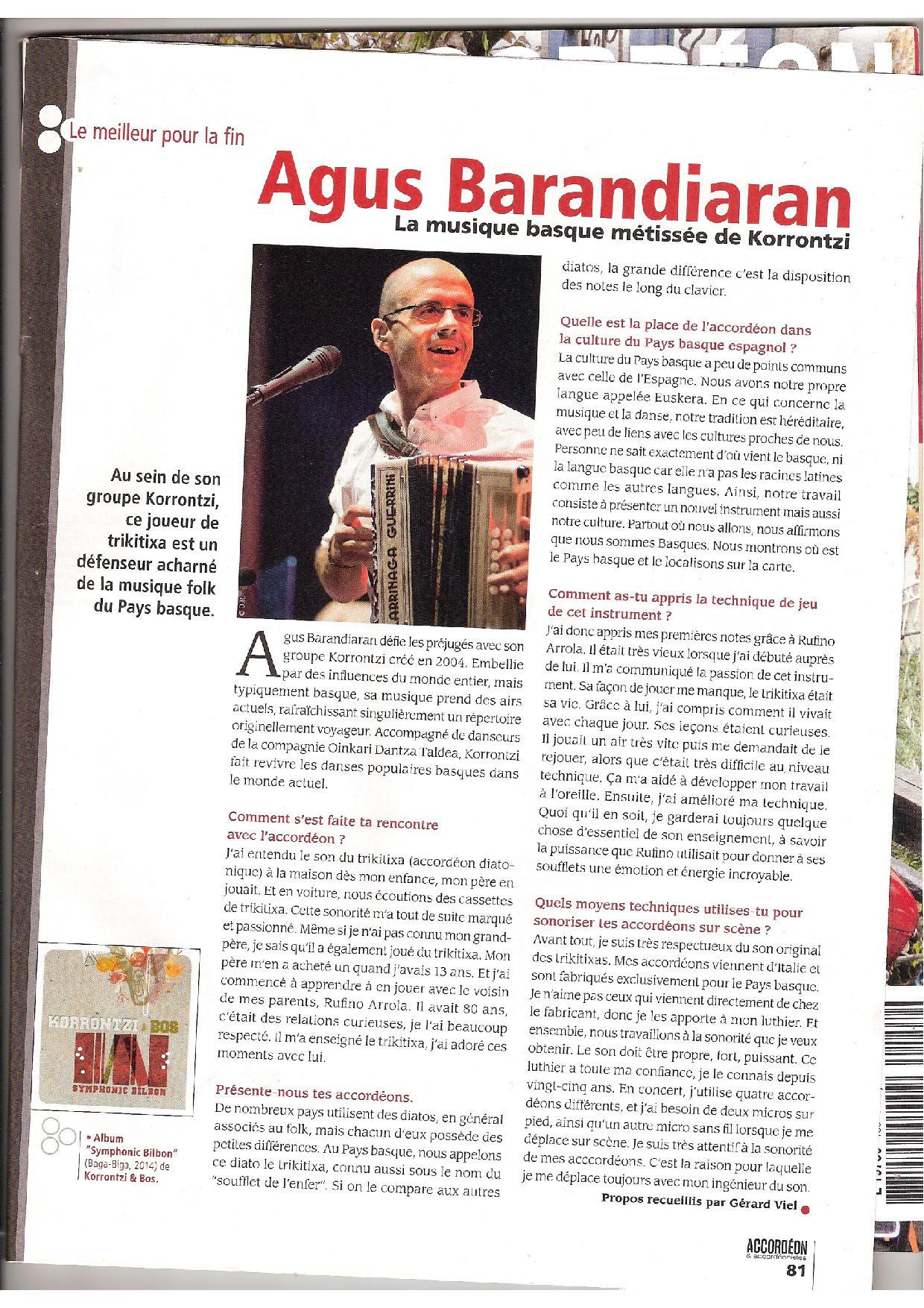 Gaur ACCORDEON & ACCORDEONISTES aldizkariaren artikulua iristen zaigu Frantziatik, KORRONTZIren trikitixari eskainita. Gure folklorea munduan!