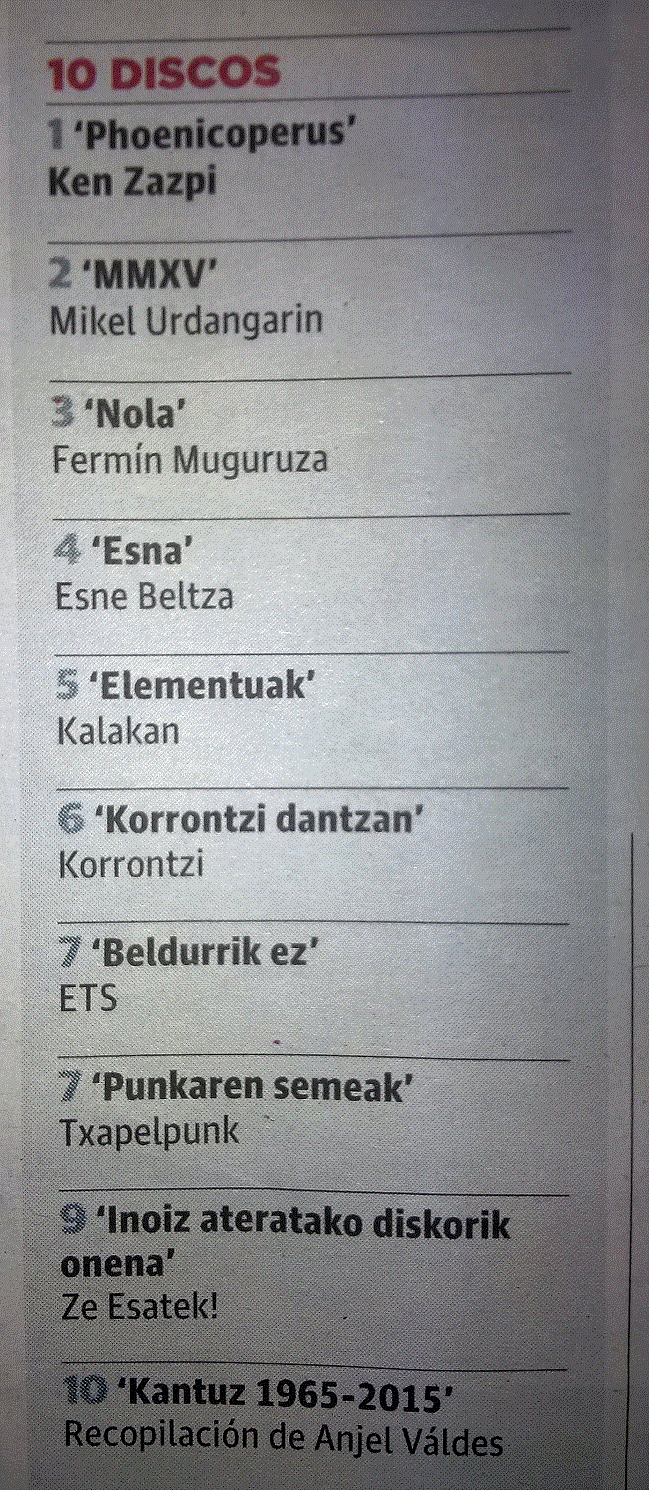 Selon les journaux d'aujourd'hui, Korrontzi nouveau parmi les plus vendus au Durangoko Azoka. Merci à tous d'entre vous qui sont venus pour acheter notre album, nous grandissent de plus en plus! Hourra KORRONTZI DANTZAN!