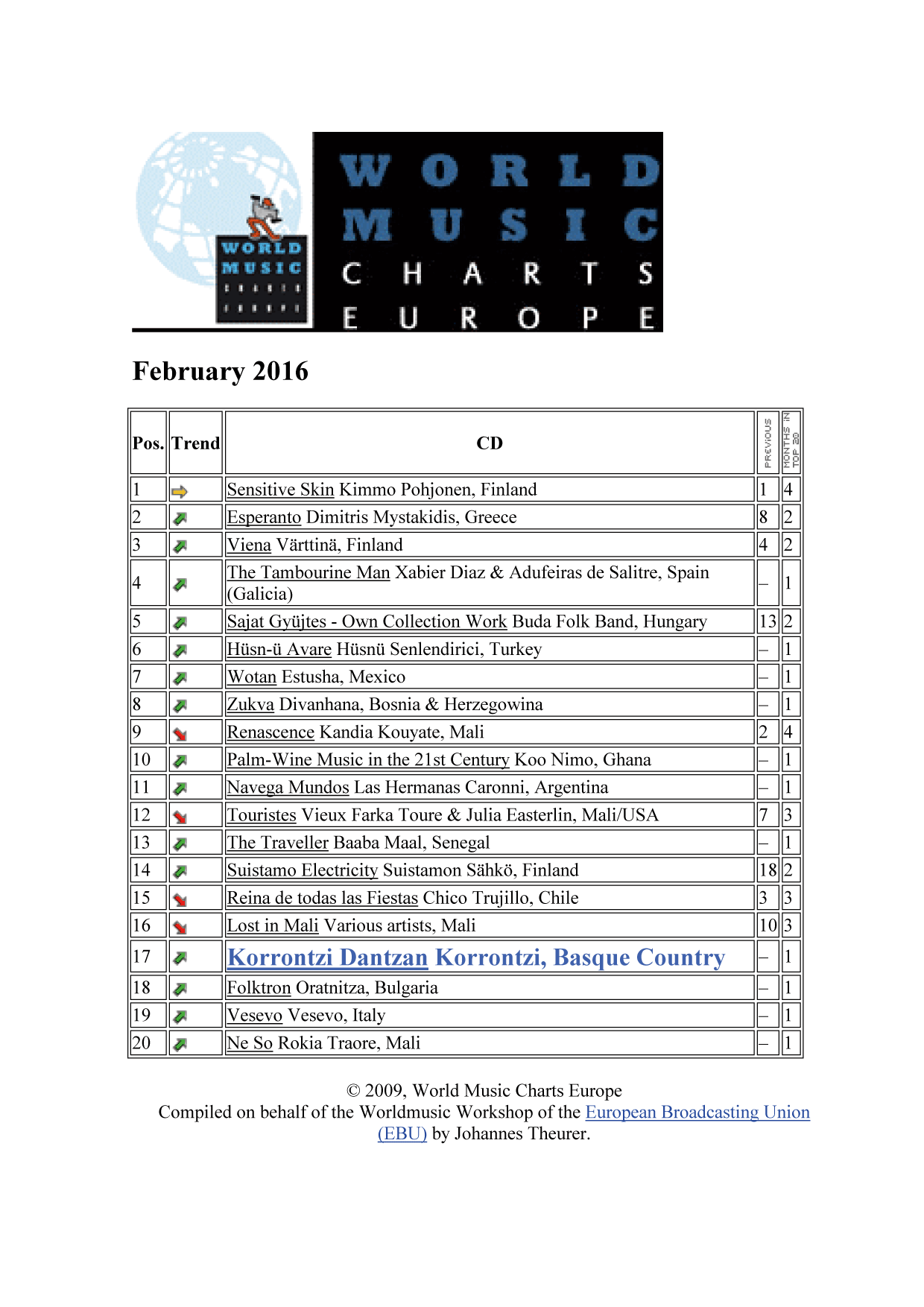 Selon la liste "World Music Charts", KORRONTZI DANTZAN sur les 20 meilleurs albums de Février!