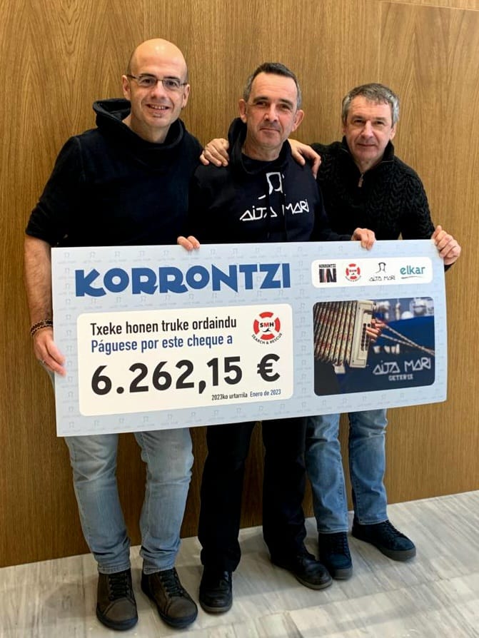 Con motivo del proyecto creado por Korrontzi a favor del barco de rescate «Aita Mari», se ha podido realizar una donación de 6.262,15 euros a la asociación no gubernamental «SMH», organismo que gestiona el barco de rescate.